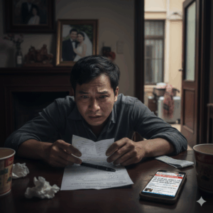 Tiếng xe taxi khựng lại trước cổng, kéo theo một cơn gió khô và bụi đường phố Sài Gòn. Anh Hoàng chống tay…