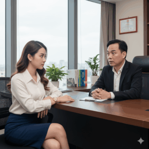 Phòng họp tầng 68 của Tập đoàn Hằng Phong sáng loáng như một cung điện thời hiện đại: bàn gỗ mun dài, đèn…