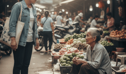 Tôi một lúc không thở. Cái muốn nói trong cổ tôi không phải câu “sao không nói sớm”, mà là một tiếng rơi. Rơi của những phán xét nhỏ bé tôi đã hì hục dựng lên nửa tháng nay.