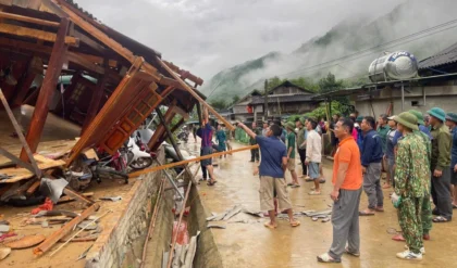 Thoạt đầu, tôi chỉ thấy một bóng người ngồi chồm hổm. Rồi đôi mắt dần quen, tôi nhận ra bóng đó là Nam. Anh dựng một khung gỗ ngay ngoài cổng, xung quanh có hai, ba người trai bản, người thì cầm búa, người thì giữ cột. Anh đang dùng dây mây buộc một tấm biển nhỏ. Không phải biển thật, chỉ là một tấm ván gỗ được bào nhẵn, trên đó những chữ nắn nót hiện ra dưới ánh đèn pin kê tạm: “Cổng nhà ở tạm của bố mẹ vợ.”