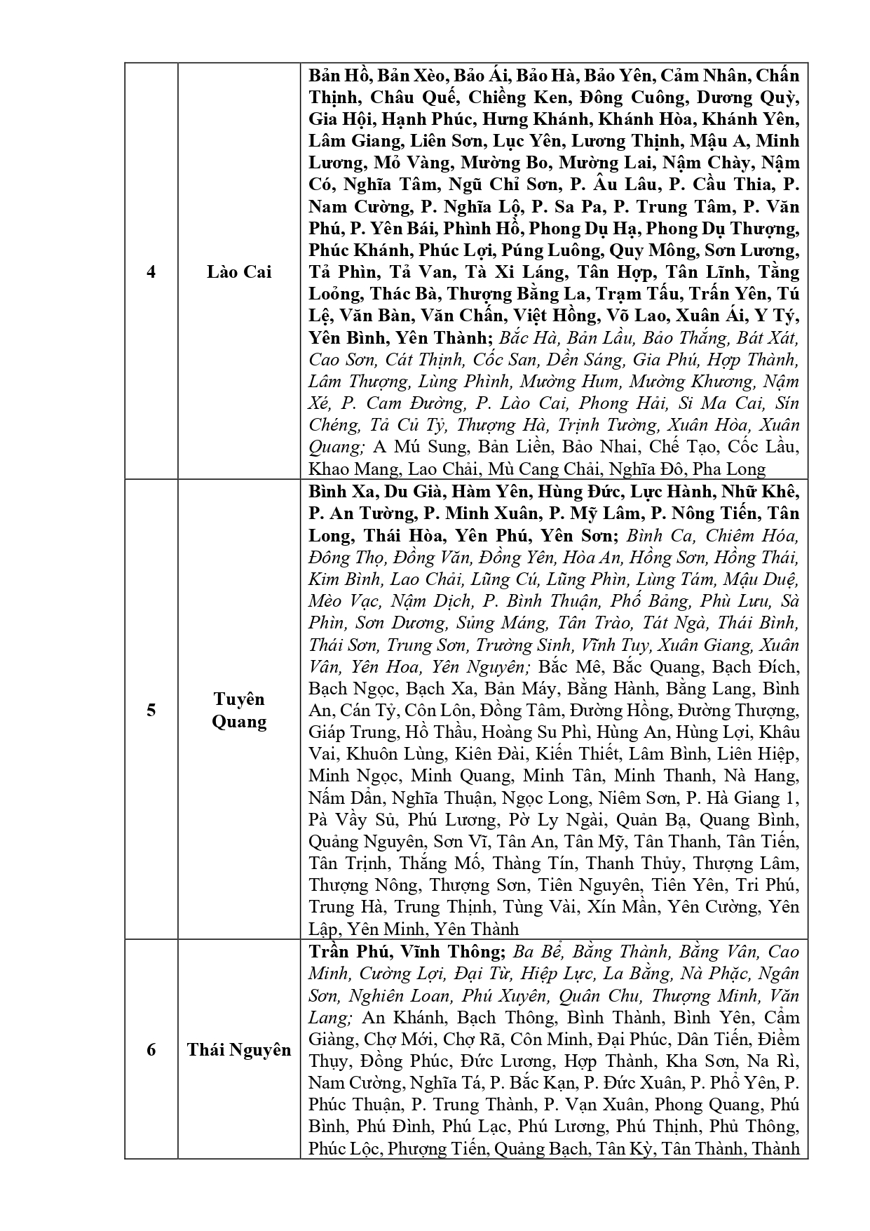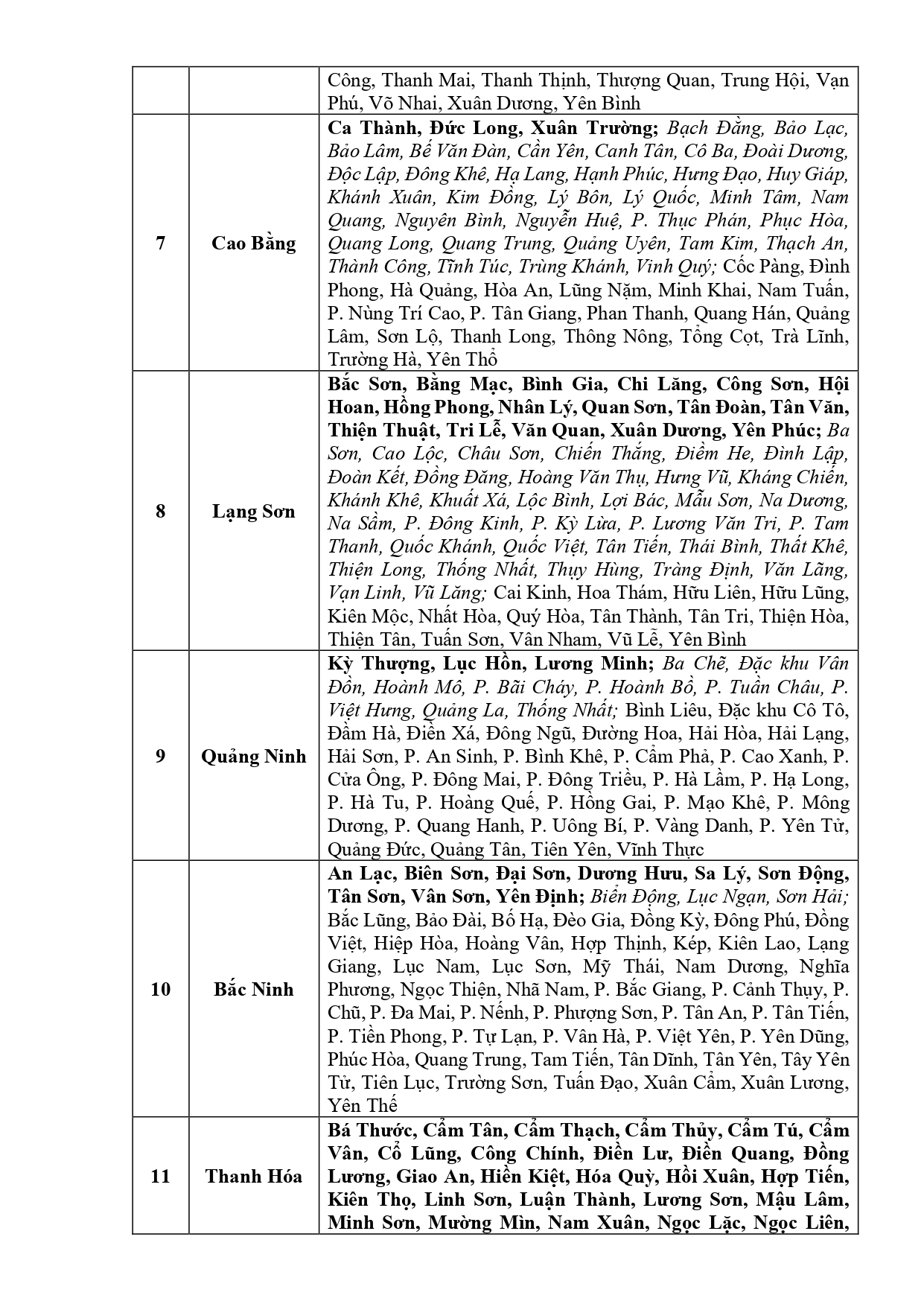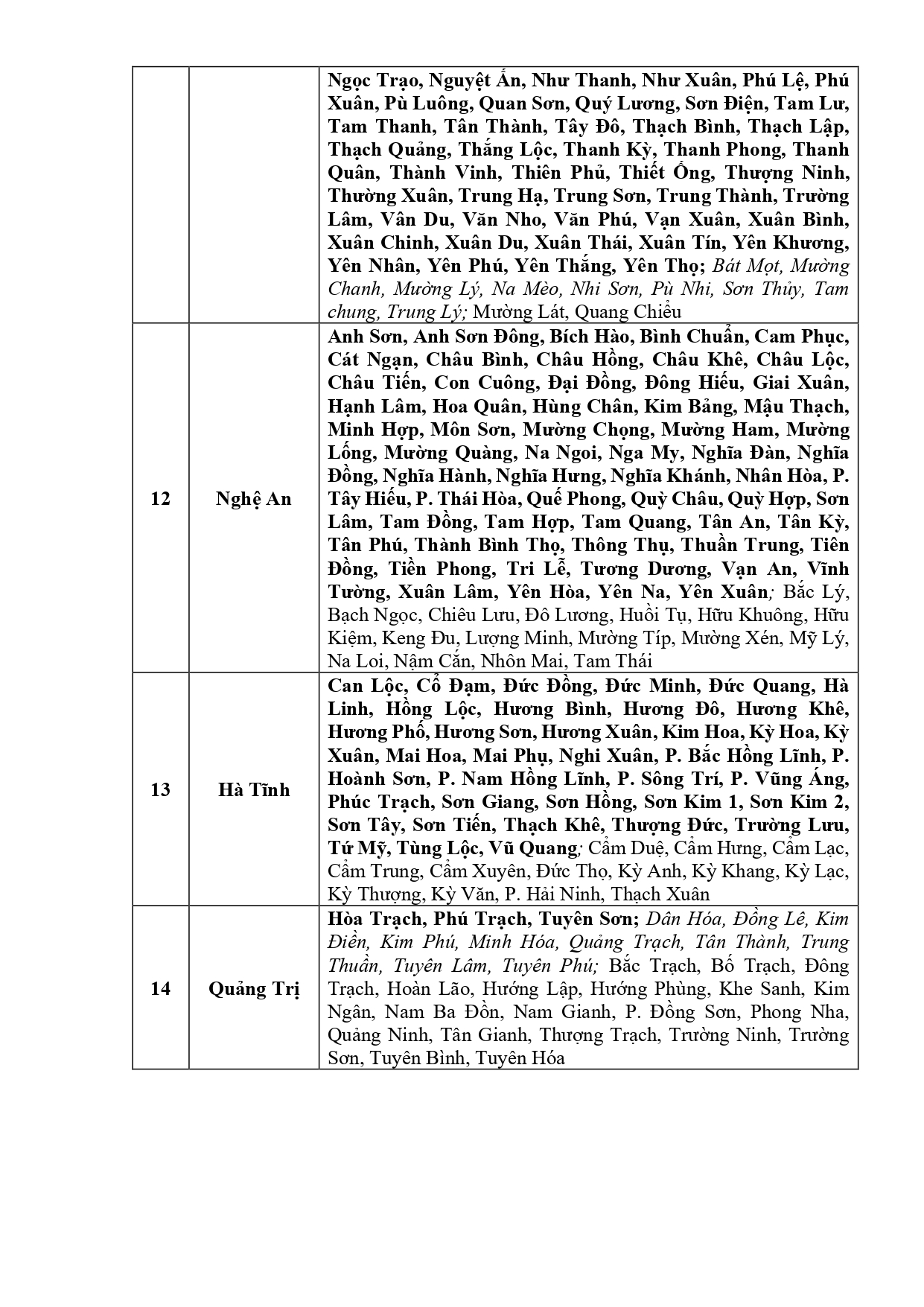 Cảnh báo cấp độ rủi ro thiên tai do lũ quét, sạt lở đất, sụt lún đất do mưa lũ hoặc dòng chảy: Cấp 1, Lào Cai, Phú Thọ, Thanh Hóa, Nghệ An và Hà Tĩnh cấp 2.