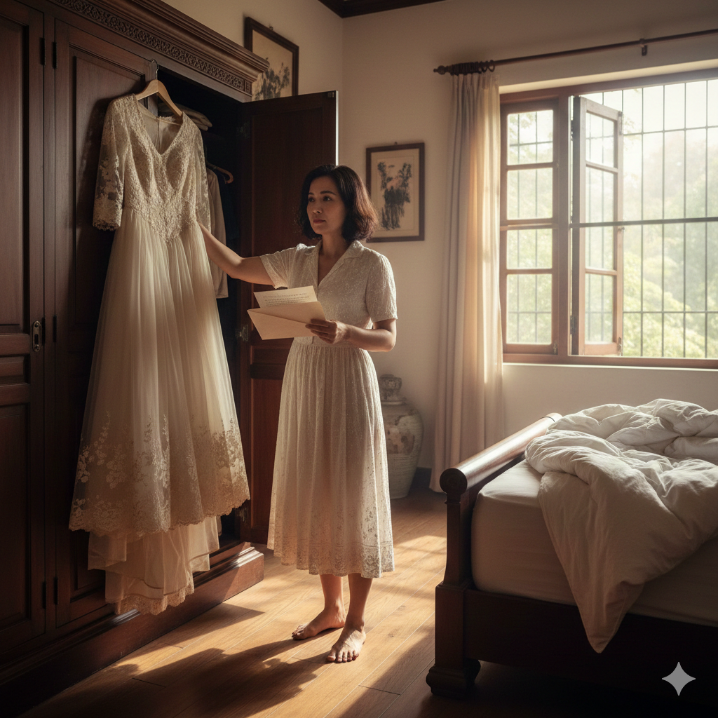 Tối đó, chúng tôi cùng nhau gấp lại chiếc váy cưới cũ, đặt lại vào tủ – như đặt một lời chúc phúc.
