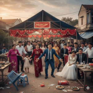 Buổi trưa, tiếng nhạc đám cưới leo lên cao như một con diều gặp gió. Dưới tán bạt xanh đỏ, hơi người, hơi…
