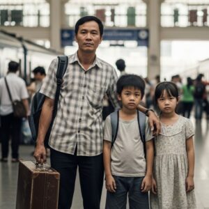 Linh lặng lẽ nắm tay em, còn anh Long bước đi như người mất hồn, lòng nặng trĩu cảm giác th/ất b/ại.