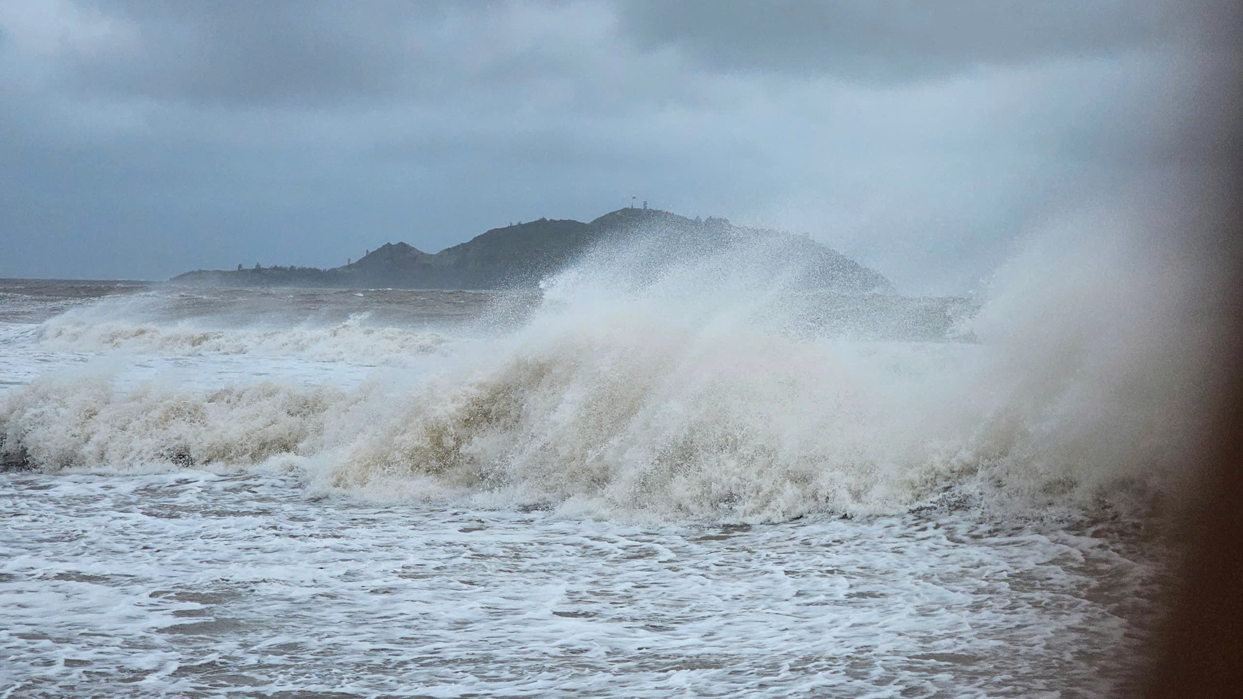 Bãi biển Bắc Gianh, tỉnh Quảng Trị sáng 29-9. Các lực lượng chức năng đang lên phương án tìm kiếm 9 thuyền viên còn mất tích. Ảnh, clip: BD