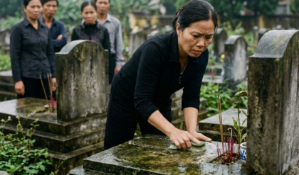 Không hương khói, không vá lỗi. Bà chỉ mang theo một thùng nước, một chiếc nhẫn cũ và… một danh sách giấy đã về nhà.