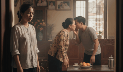 Tuấn mặt tái mét, mẹ anh run rẩy, còn Mai mỉm cười — nụ cười lạnh như sương sớm.